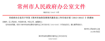 在最近常州市人民政府頒布的《常州市加快發(fā)展現(xiàn)代服務(wù)業(yè)三年行動(dòng)計(jì)劃》中,中環(huán)互聯(lián)網(wǎng)被授予常州市現(xiàn)代服務(wù)業(yè)三年行動(dòng)計(jì)劃創(chuàng)新型重點(diǎn)培育企業(yè)。
