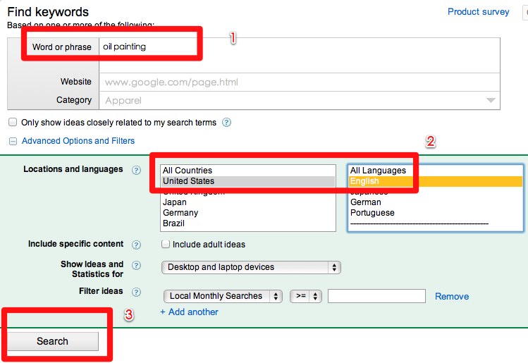 要理解如何利用這些工具來找潛在的外貿(mào)客戶,首先我們要弄清楚谷歌的關(guān)鍵詞工具到底如何用, 簡單的來說你只需要在Google Keyword Tool中輸入一個關(guān)鍵詞,那么系統(tǒng)會自動列出眾多的相關(guān)和相似的關(guān)鍵詞,而這些關(guān)鍵詞都是實實在在有用戶搜索過的,也就是說是用戶的語言。有好幾個人在我博客留言說是做油畫的,那我就用油畫來做這次的案例,首先我們在關(guān)鍵詞工具中輸入油畫 ‘Oil Painting‘ ,這是所有做油畫人的商人能想到的第一個關(guān)鍵詞。