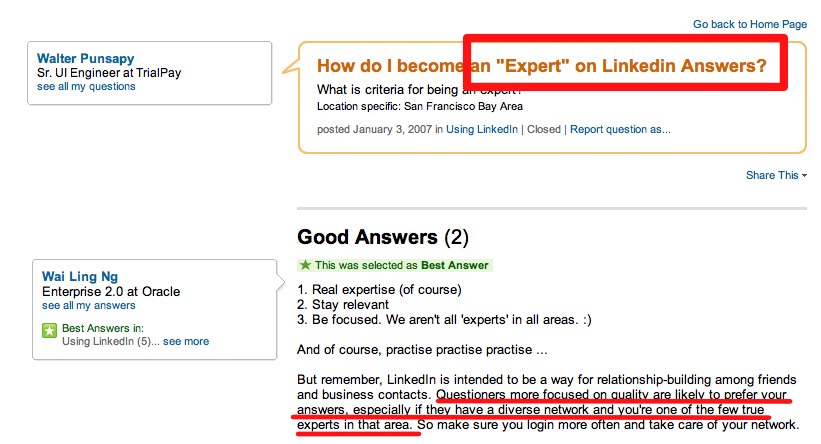 - 在Linkedin問(wèn)答區(qū)回答問(wèn)題質(zhì)量貴在精辟,如果被選中最佳答案,是有機(jī)會(huì)被貼上‘Expert’的標(biāo)簽!