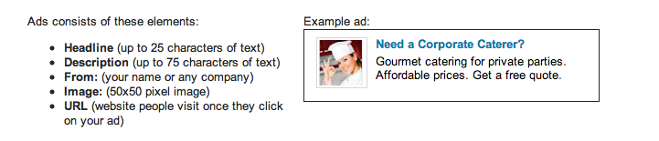 從Linkedin廣告投放的人群選擇性來(lái)看,的確是更為精準(zhǔn),廣告商可以選擇投放到特定的職位,行業(yè),地理位置,性別,公司以及Linkedin組群,也可以自由的組合各種屬性。Linkedin廣告的編輯其實(shí)和Adwords大同小異,唯一多了一個(gè)小圖片: