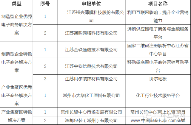 為貫徹落實(shí)市政府《常州市傳統(tǒng)優(yōu)勢產(chǎn)業(yè)轉(zhuǎn)型升級(jí)“雙百”行動(dòng)計(jì)劃(2013-2015年)》(常政辦法【2013】171號(hào))精神,確保完成“雙百”行動(dòng)計(jì)劃的電商目標(biāo),促進(jìn)傳統(tǒng)產(chǎn)業(yè)轉(zhuǎn)型升級(jí),樹立企業(yè)開展電子商務(wù)應(yīng)用典范和標(biāo)桿,經(jīng)企業(yè)申報(bào)、轄市區(qū)推薦、專家評(píng)審等程序,評(píng)選出制造型企業(yè)優(yōu)秀電子商務(wù)解決方案2家、制造型企業(yè)特色電子商務(wù)解決方案3家、產(chǎn)業(yè)集聚區(qū)優(yōu)秀電子商務(wù)解決方案1家、產(chǎn)業(yè)集聚區(qū)特色解決方案2家,現(xiàn)予公示。