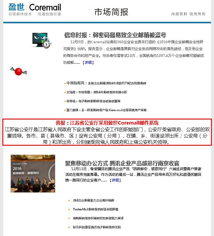 中環(huán)互聯(lián)網(wǎng)為廣大客戶提供的產(chǎn)品之一——盈世郵箱,成為了江蘇省公安廳內(nèi)部使用系統(tǒng),足夠安全才能擁有更多的機(jī)會(huì)。
