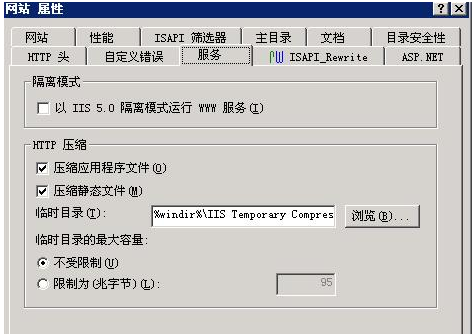 改進(jìn)建議:5秒內(nèi)可以打開,改買VPS、合租服務(wù)器、云服務(wù)器,硬件只速度決定因素之 一,網(wǎng)站程序也很重要,請(qǐng)優(yōu)化你的網(wǎng)站程序訪問速度,如減小圖片體積、少使用大圖等,還有一個(gè)就是要設(shè)置網(wǎng)頁壓縮,一般獨(dú)立服務(wù)器的話在IIS里設(shè)置,如圖: